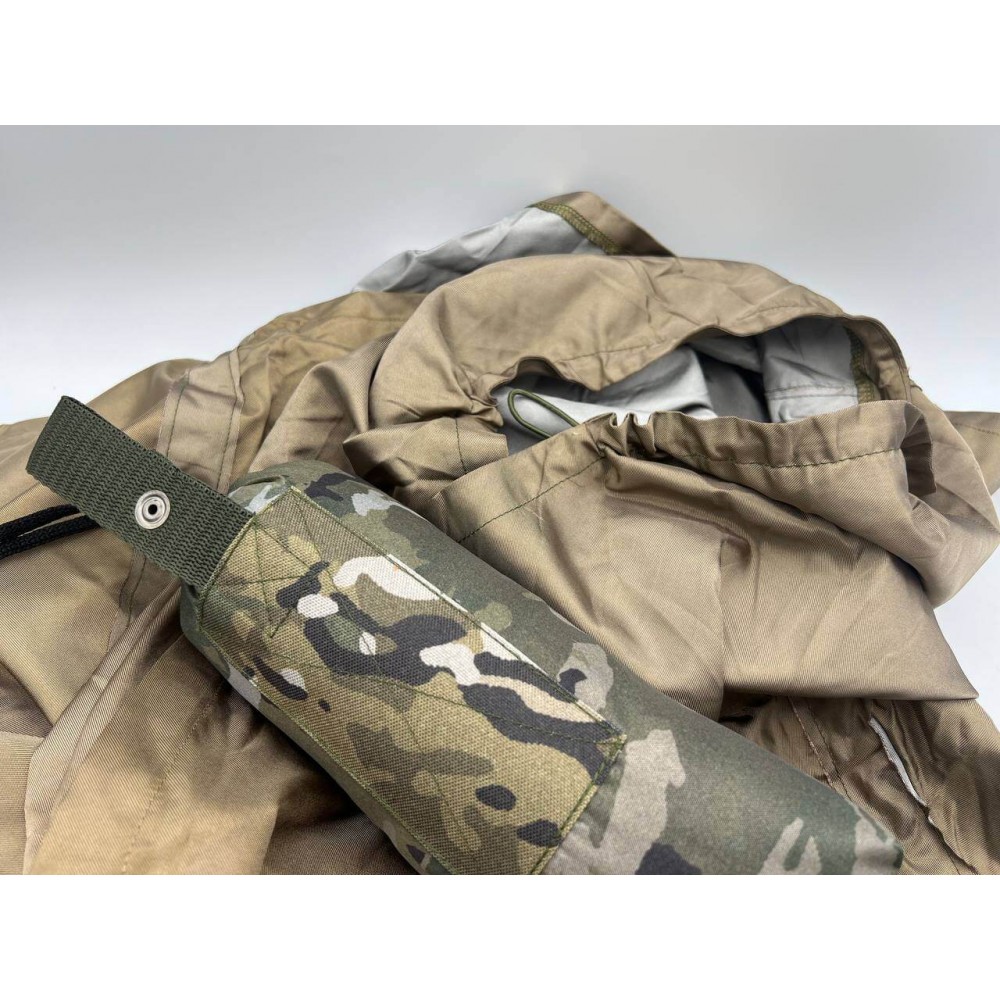 - Теплонепрозрачность: Маскировочное пончо-накидка "Невидимка" способно экранировать тепло, излучаемое человеком, что делает его практически невидимым для тепловизоров и приборов ночного видения. Это позволяет военнослужащему дольше оставаться необнаруженным на поле боя и получить тактическое преимущество.
